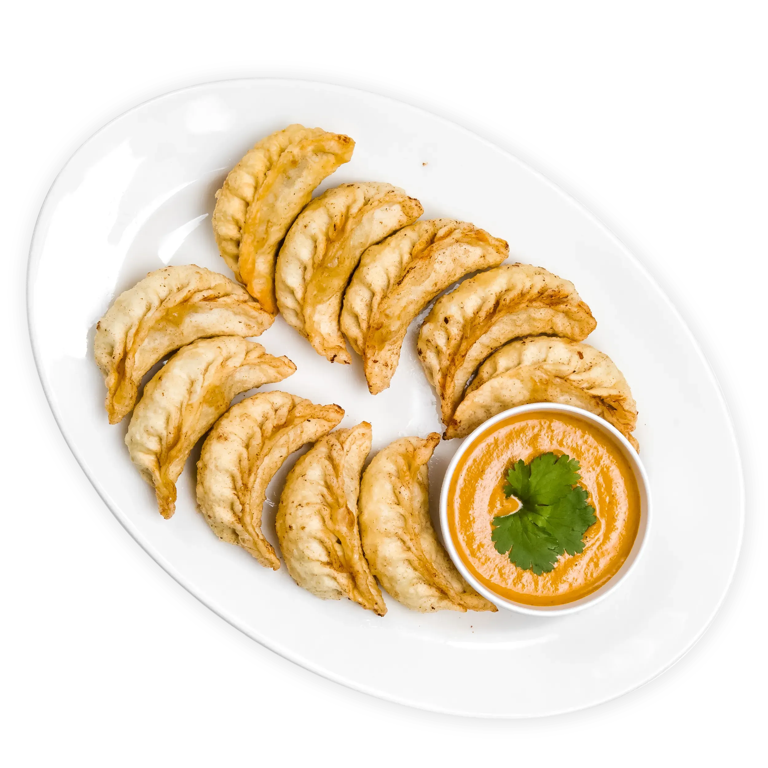 Crispy dumplings filled with minced chicken and seasoned with herbs and spices, deep-fried to golden perfection.